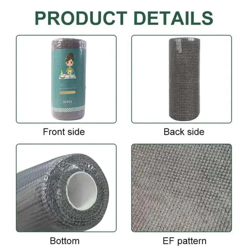 Keep your kitchen and home spotless with this Disposable Cleaning Cloth Roll, designed for quick, hygienic, and efficient cleaning. Each roll contains 25 pre-cut sheets (20x20 cm) made from thick, absorbent, non-woven material that effectively wipes away oil, grease, and spills. These single-use wipes offer maximum convenience — just tear, use, and dispose of after cleaning. The textured surface ensures superior dirt pickup, making them ideal for cleaning utensils, kitchen counters, and appliances. A perfect solution for maintaining cleanliness without the hassle of washing cloths, these wipes are strong, hygienic, and ready for daily use.